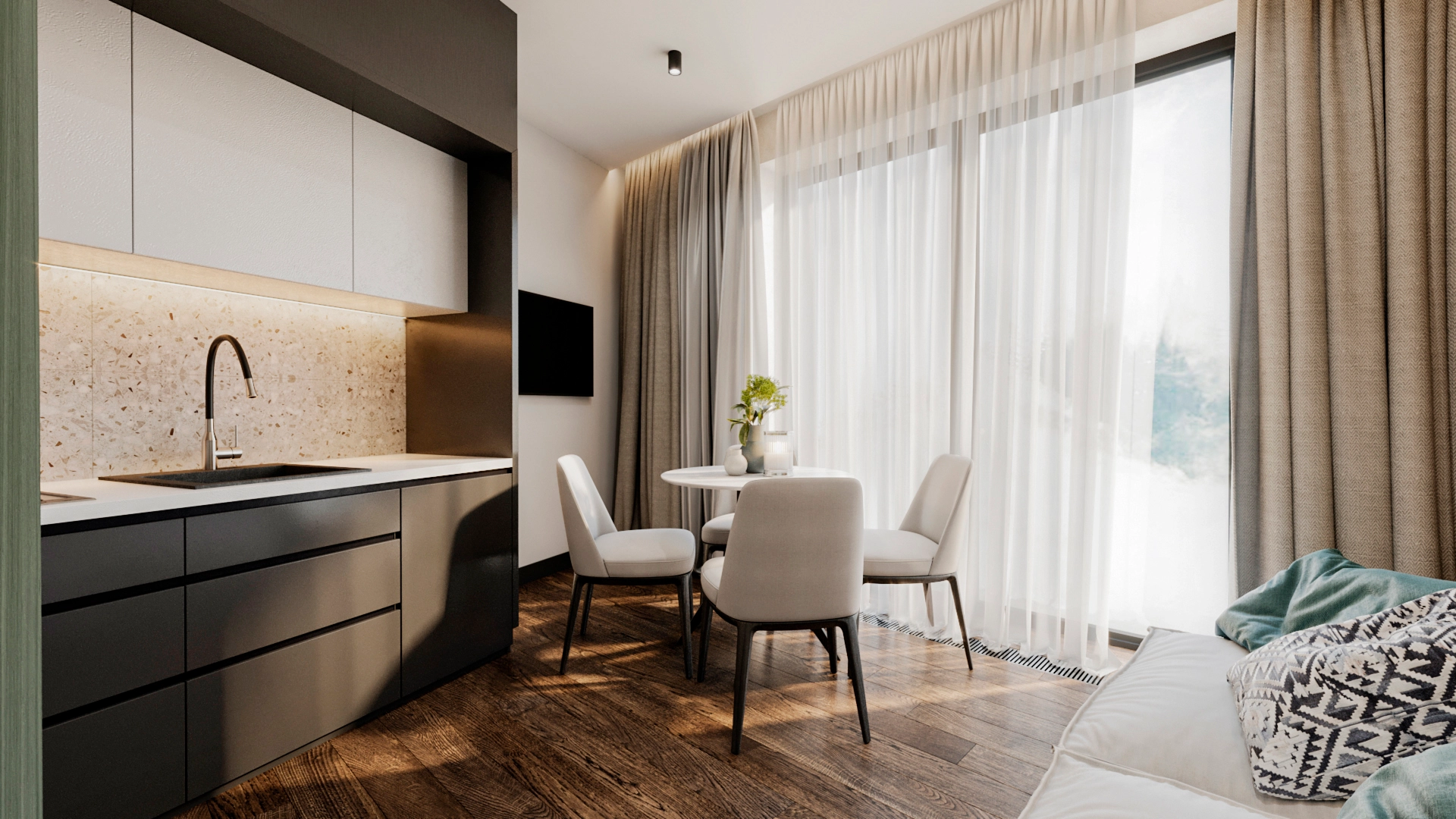 Можливість використовувати апартаменти для особистого відпочинку до 4 тижнів на рік* Поєднання комфорту та інвестиційної вигоди.